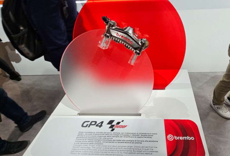 La tecnologia Brembo rappresenta il top da sempre, avendo festeggiato il quarantottesimo anno di presenza nel mondiale nel 2023. La GP4 è diventata la pinza a quattro pistoni più utilizzata nella top class. Grazie alle tecnologie moderne i dischi in freno in carbonio ed altri materiali consentono un peso ridottissimo. Il carbonio, infatti, permette una riduzione delle masse non sospese grazie un coefficiente d’attrito minimo che rende possibile un peso totale di appena 5,5 chilogrammi per l’impianto frenante dei prototipi della MotoGP.
